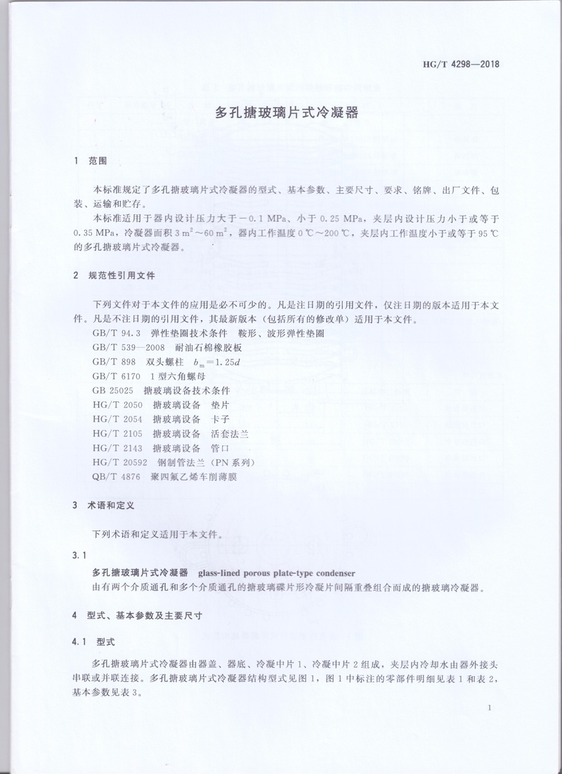 HG/T 4298-2018規(guī)范性引用文件 術(shù)語(yǔ)和定義【多孔搪玻璃片式冷凝器】