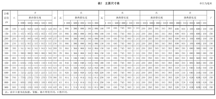 HG/T 5633-2019列管式碳化硅換熱器結構型式、主要尺寸、布管數(shù)及換熱而積: