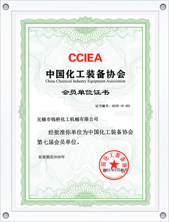 中國化工裝備協(xié)會會員單位證書