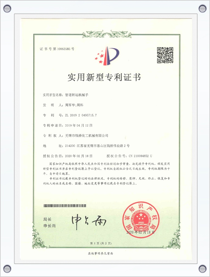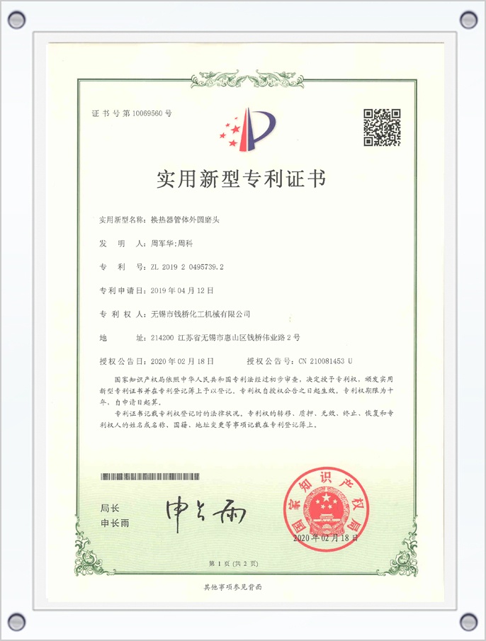 碳化硅換熱器內(nèi)測密封裝置專利證書