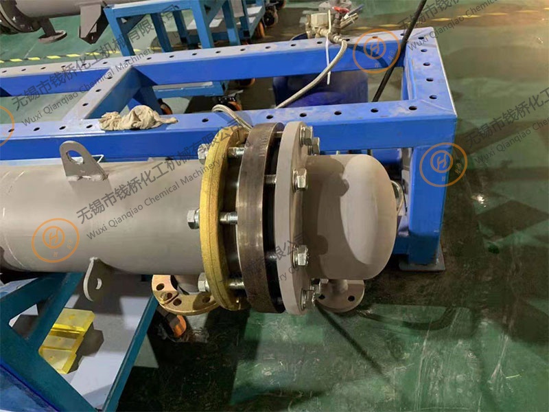 2020-03-05錢(qián)橋化工機(jī)械發(fā)明公開(kāi)了一種實(shí)用新型碳化硅換熱器鋼襯四氟管板密封裝置,包括第一鋼襯管板、第二鋼襯管板、支撐板、密封部和檢漏部,支撐板設(shè)置在第一鋼襯管板和第二鋼襯管板之間,檢漏部設(shè)置在支撐板上,檢漏部包括在支撐板與第一鋼襯管板接觸的邊緣設(shè)有凸起,以及凸起與第一鋼襯管板之間形成間隙,支撐板頂部設(shè)有檢測(cè)管道...