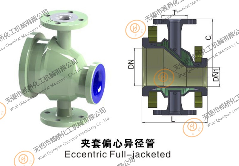 錢橋化工機械生產的搪瓷夾套異徑管分為搪瓷夾套偏心異徑管和搪瓷夾套同心異徑管