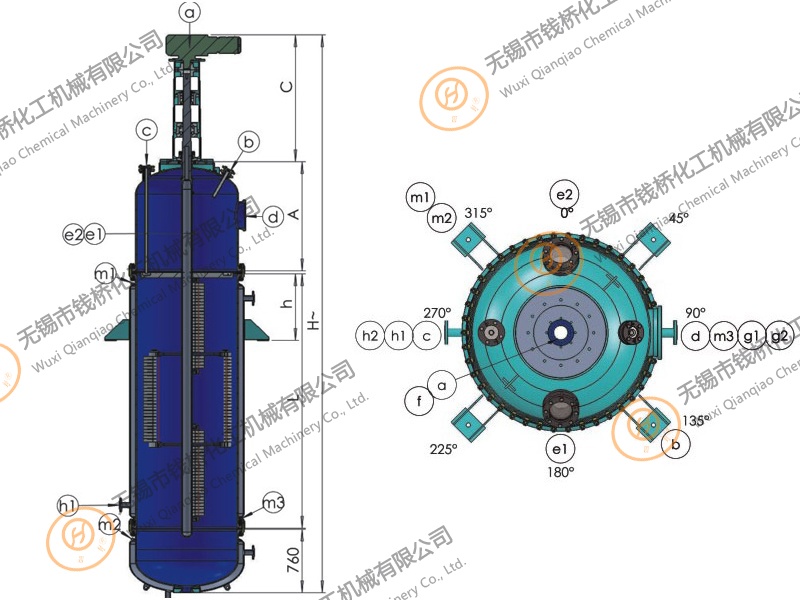 WFE Glass-lined film evaporator:Vessel FV-0.25 Mpa,Jacket 0.6MPa;Executive standard:(HG/T4299-2019)。