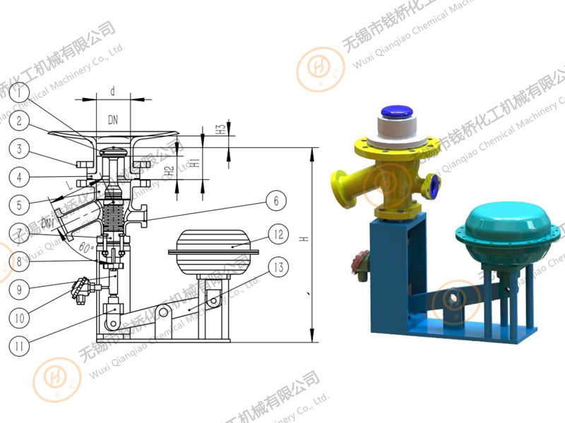 搪玻璃上展式自動(dòng)放料閥(側(cè)向執(zhí)行機(jī)構(gòu))